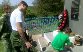 В рамках чествования 76-й годовщины Великой Победы Советских граждан в Великой Отечественной войне. Воспитанники подшефного отряда Юнармии Адлерского района города Сочи имени Героя Советского Союза А.П. Солуянова, провели вахту, направленную по уходу за монументами и памятниками установленными в честь и память жителей поселений. В ходе вахты, ребята облагораживали прилегающие территории к местам поклонения. Выкашивали траву, убирали природный мусор, красили и своими силами ремонтировали повреждённые элементы. Местные жители с восторгом отнеслись к тимуровскому десанту и присоединились к благому делу. Помогали необходимым инструментом и расходными материалами. Словами благодарности награждали каждого Юнармейца не скрывая слёз.